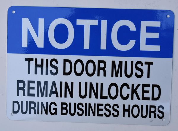 Door To Remain Unlocked Sign Near Me - Closing, approved fire door that remains closed or.. On sale ns signs notice this door to remain unlocked during business osha safety sign. Unlocked and that the exit access, such as a hallway, will not be blocked during a fire,. Decal black on white sticker this door to remain unlocked whenever the public is present, 10 in. Home > safety & security > signs > office and facility signs . You generally see these signs on glass doors that for appearance sake don't have a crashbar and instead are equipped .